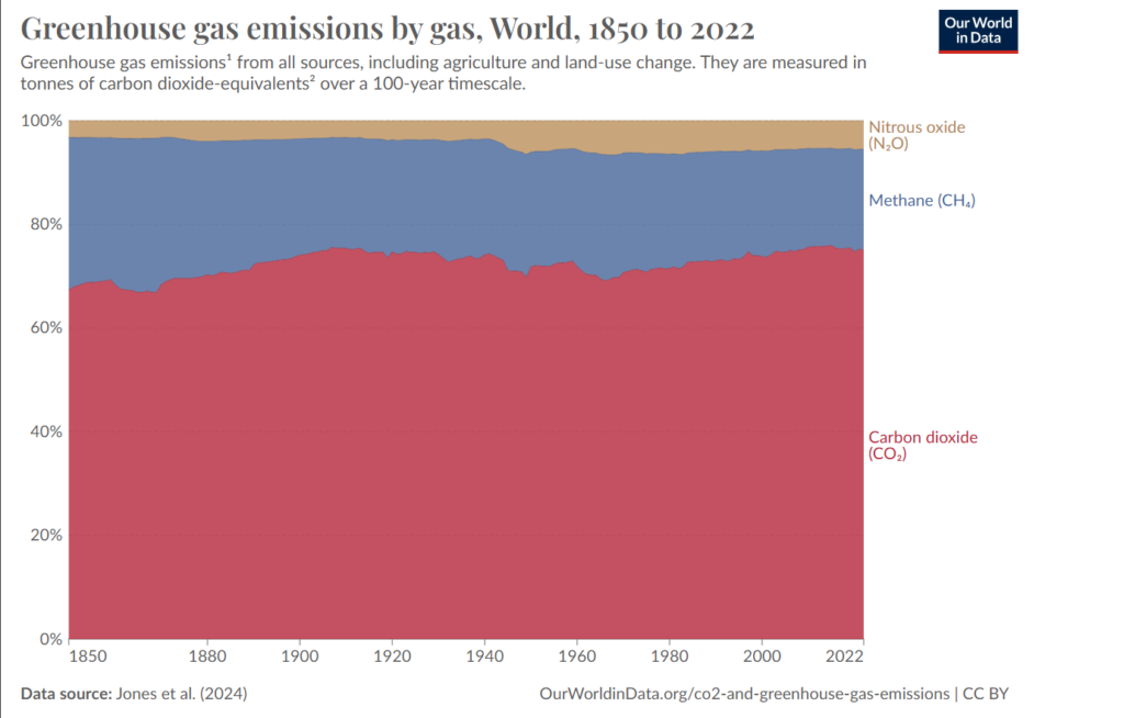 (上圖) Our World in Data 溫室氣體排放占比趨勢 (2024更新)