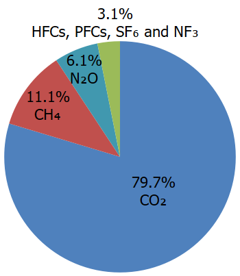 - 二氧化碳 Carbon Dioxide (CO2):排放量最大,佔人類活動導致的排放約 75-80%